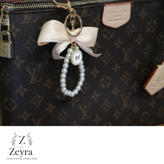 Zeyra Jolie – Eleganter Taschenanhänger mit Perlen-Schleife | Stilvoll & Zeitlos | Versand aus DE