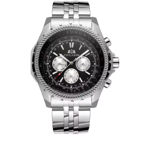 Stilvoll, präzise und kraftvoll – die Zeyra® PAULAREIS Automatik-Herrenuhr ist ein Symbol für Charakter und Selbstbewusstsein. Ihr massives Design mit über 50 mm Gehäusedurchmesser verleiht ihr eine markante Präsenz am Handgelenk, während das selbstaufziehende Automatikwerk für zuverlässige Präzision sorgt.