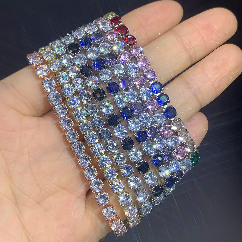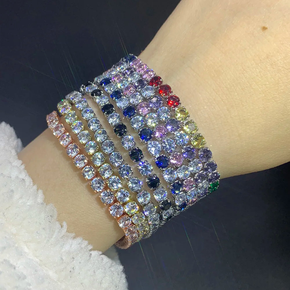 Tennisarmband Damen – Buntes Zirkonia Armband 4mm, Silberfarben, Luxus & Trendy | Zeyra | Versand aus D
