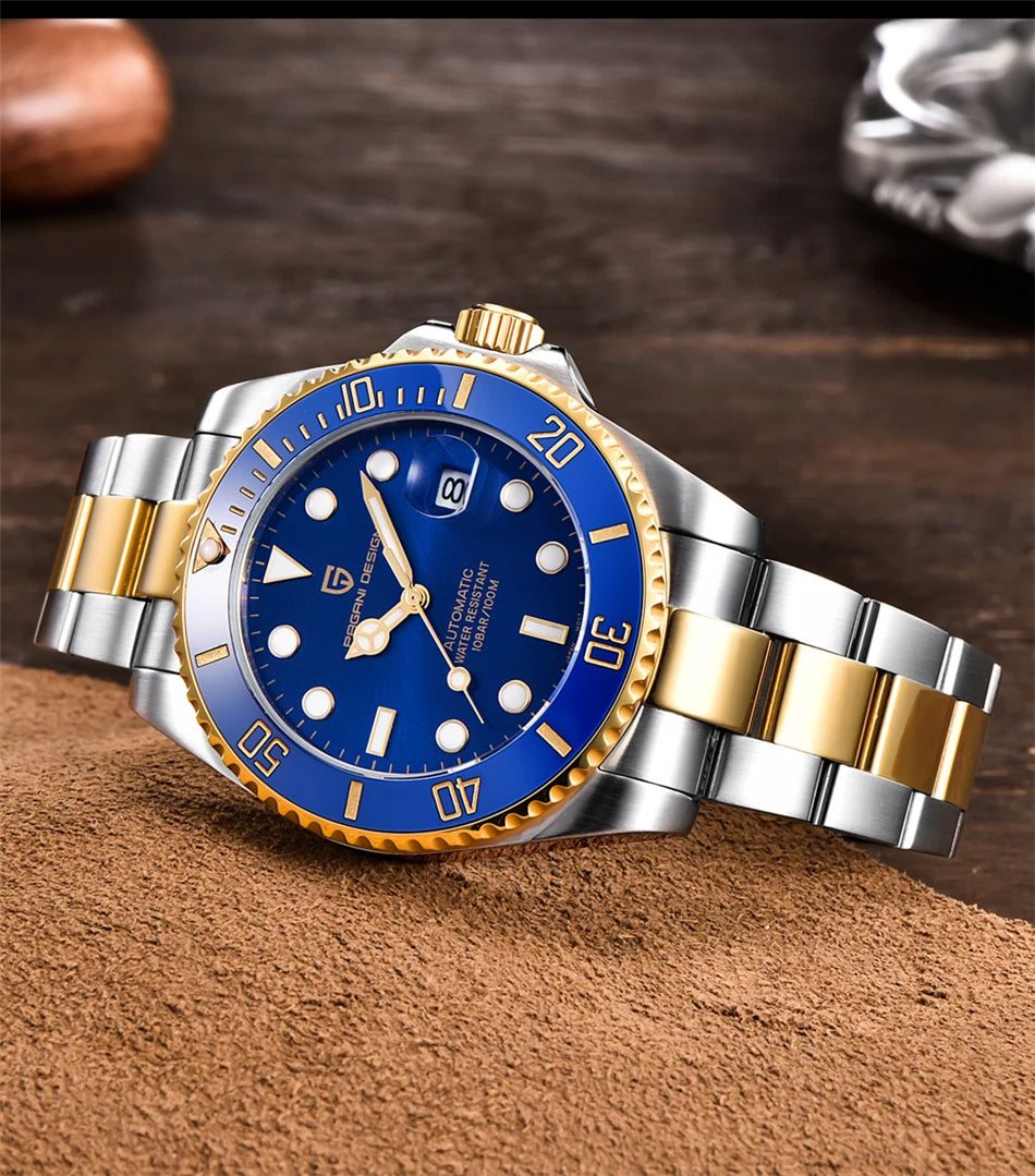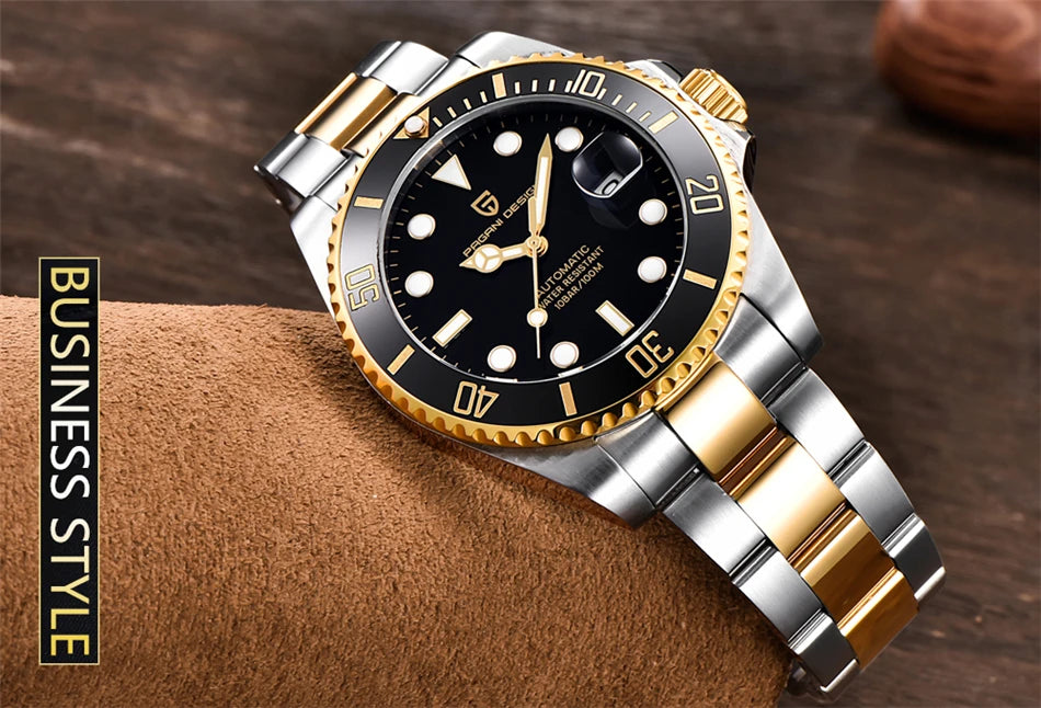 Die PAGANI DESIGN PD-1639 ist eine hochwertige Herren-Automatikuhr, gefertigt aus massivem 316L Edelstahl und ausgestattet mit einem japanischen Automatikwerk.