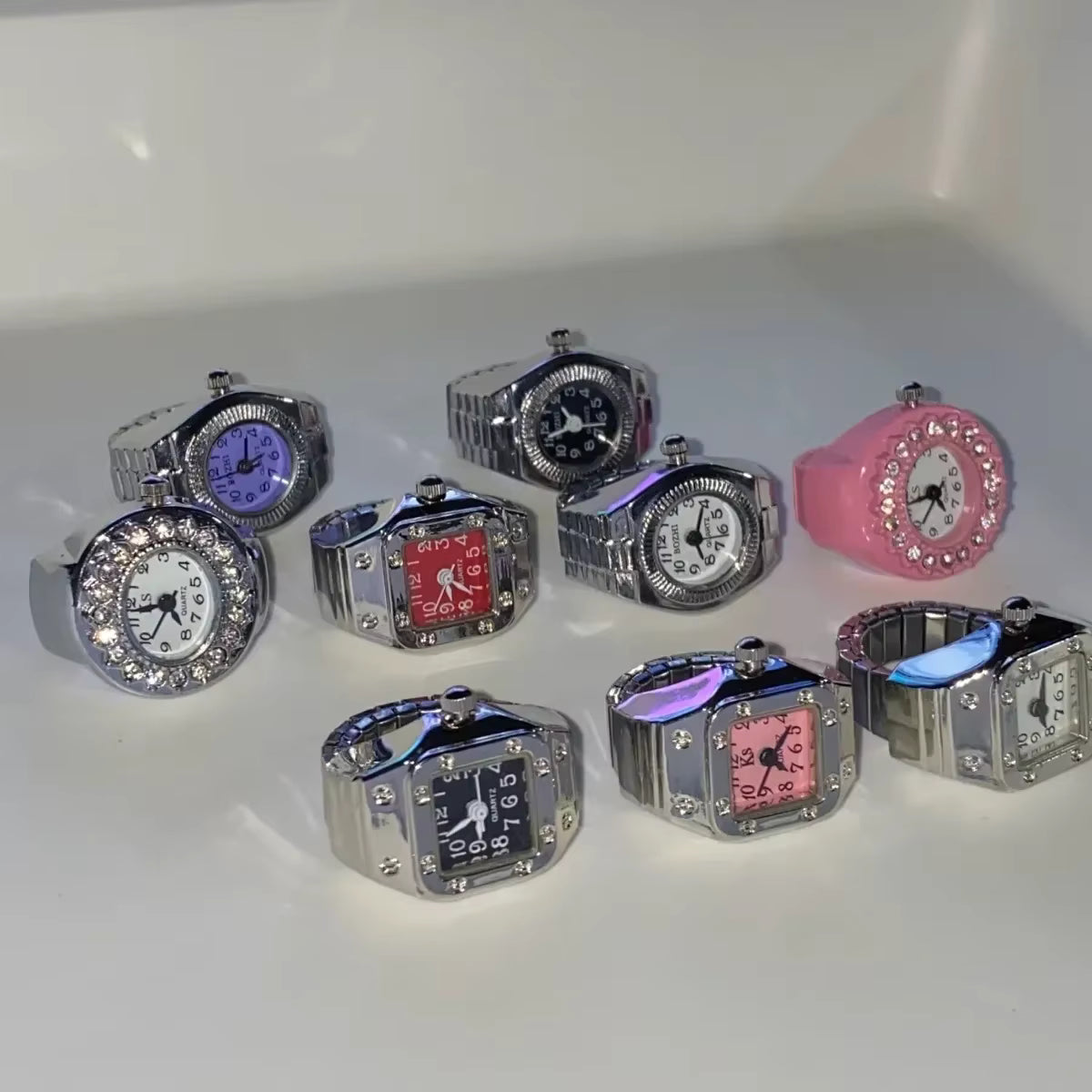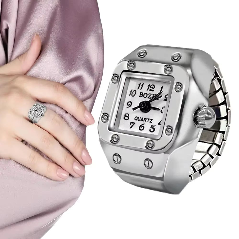 Vintage Uhrenring – Retro Mini Fingeruhr mit elastischem Band | Unisex Punk Schmuck & Accessoire | Zeyra®