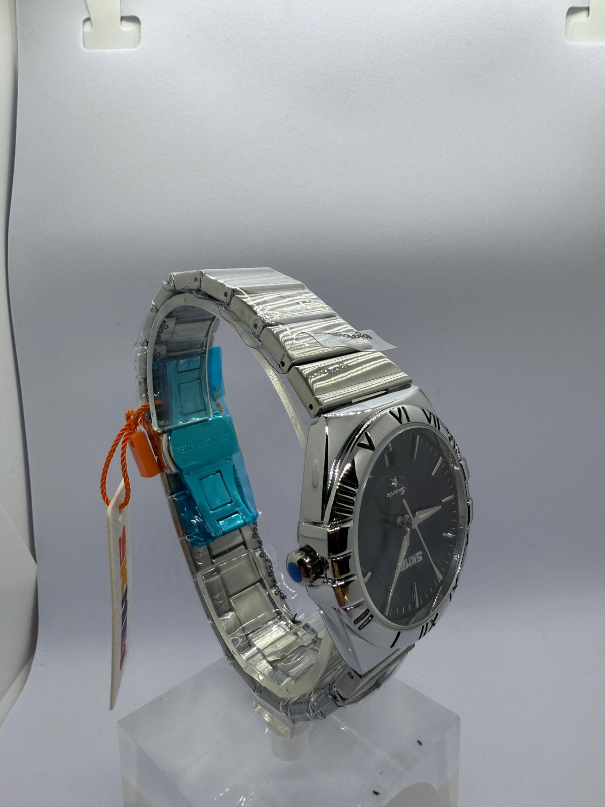 Die Zeyra NoirImperial verbindet dunkle Eleganz mit königlicher Ausstrahlung. Das tiefschwarze Zifferblatt in Kombination mit der zweifarbigen Edelstahlausführung verleiht dieser Uhr einen besonders luxuriösen Charakter. Die eingravierten römischen Ziffern auf der polierten Lünette setzen starke, klassische Akzente.